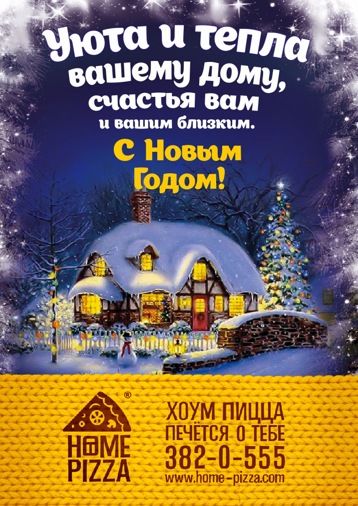 Как всегда, этот праздник несет за собой множество хлопот – подарки близким, украшение елки, праздничное меню и его приготовление. Поскольку слоган нашей компании выражает бескрайнюю заботу о вас, позвольте предложить вам помощь в подготовке праздничного стола. Наши пироги или пицца будут хорошо сочетаться с традиционными новогодними блюдами и разнообразят ваш стол, сэкономив вам время на готовке. Пара сытных сетов из японской кухни придется кстати, если вы планируете прием гостей с самого утра 31 декабря. Да даже если вы сами собираетесь в гости, чтобы идти не с пустыми руками, закажите наши пироги. Вам будут рады вдвойне, ведь еды много не бывает.