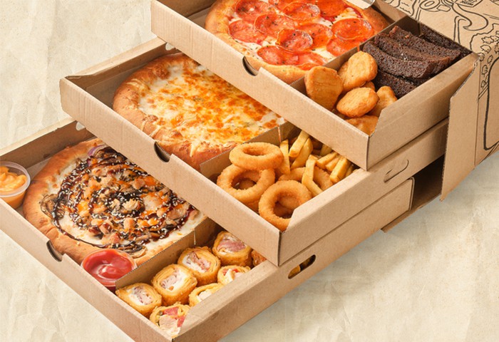 Пицца Пепперони 20см, пицца Курица Терияки 20см, пицца 4 сыра 20см, ролл Горячая тортилья с курицей и халапеньо, ролл Горячий Бекон, наггетсы, картофель фри, гренки чесночные, луковые кольца, соус кетчуп, соус сметанно-чесночный, соус сырный, соус спайси
